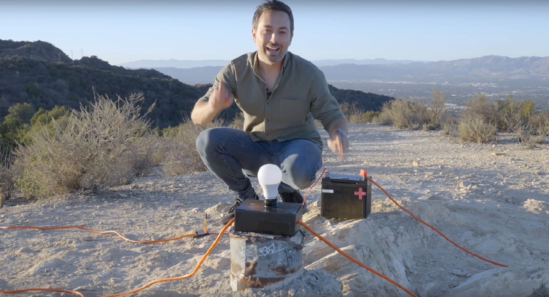 Al comienzo del video, se propone la idea de un hipotético circuito con una batería, un interruptor, una bombilla y dos cables de 300 mil kilómetros de largo. Según él, al accionar el interruptor la bombilla encendería en una fracción de segundo (1/cs) lo cual supuestamente demostraría que no son los electrones los que transportan la energía por los cables, ya que estos tardarían al menos un segundo en recorrer todo el trayecto.