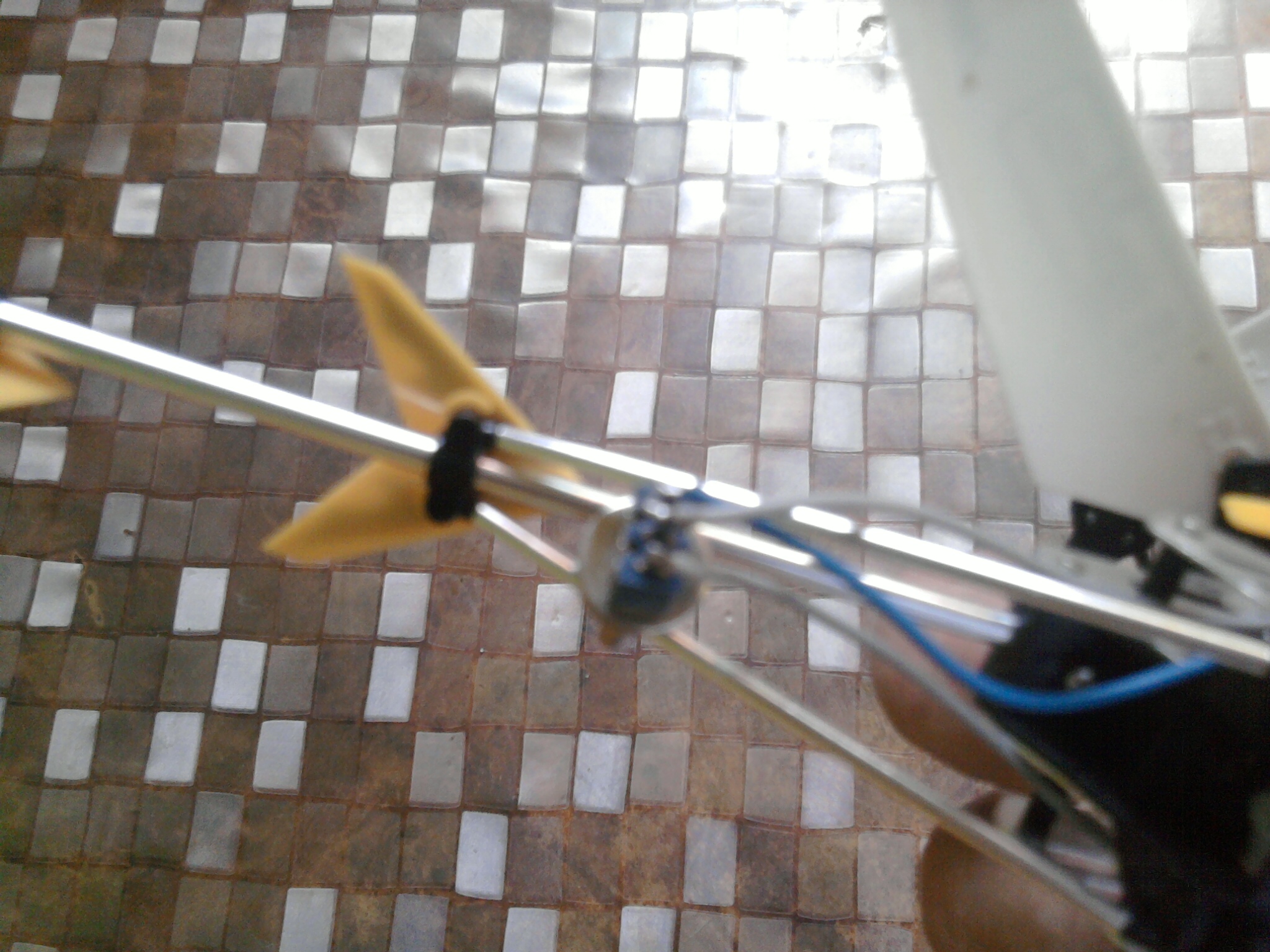 Más adelante otra de las aspas se rompió pero de tal forma que no podía ser unida con pegamento, por lo que mi hermano me ayudó haciendo a mano una hélice con un pedazo de plástico, la cual quedó de la forma y tamaño exactos a la original, en esto se debe tener en cuenta que la hélice debe ser lo más parecida posible, incluso en el peso para que el helicóptero se pueda elevar.