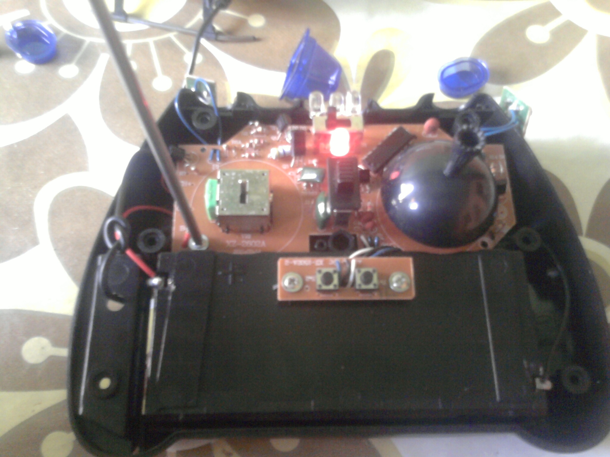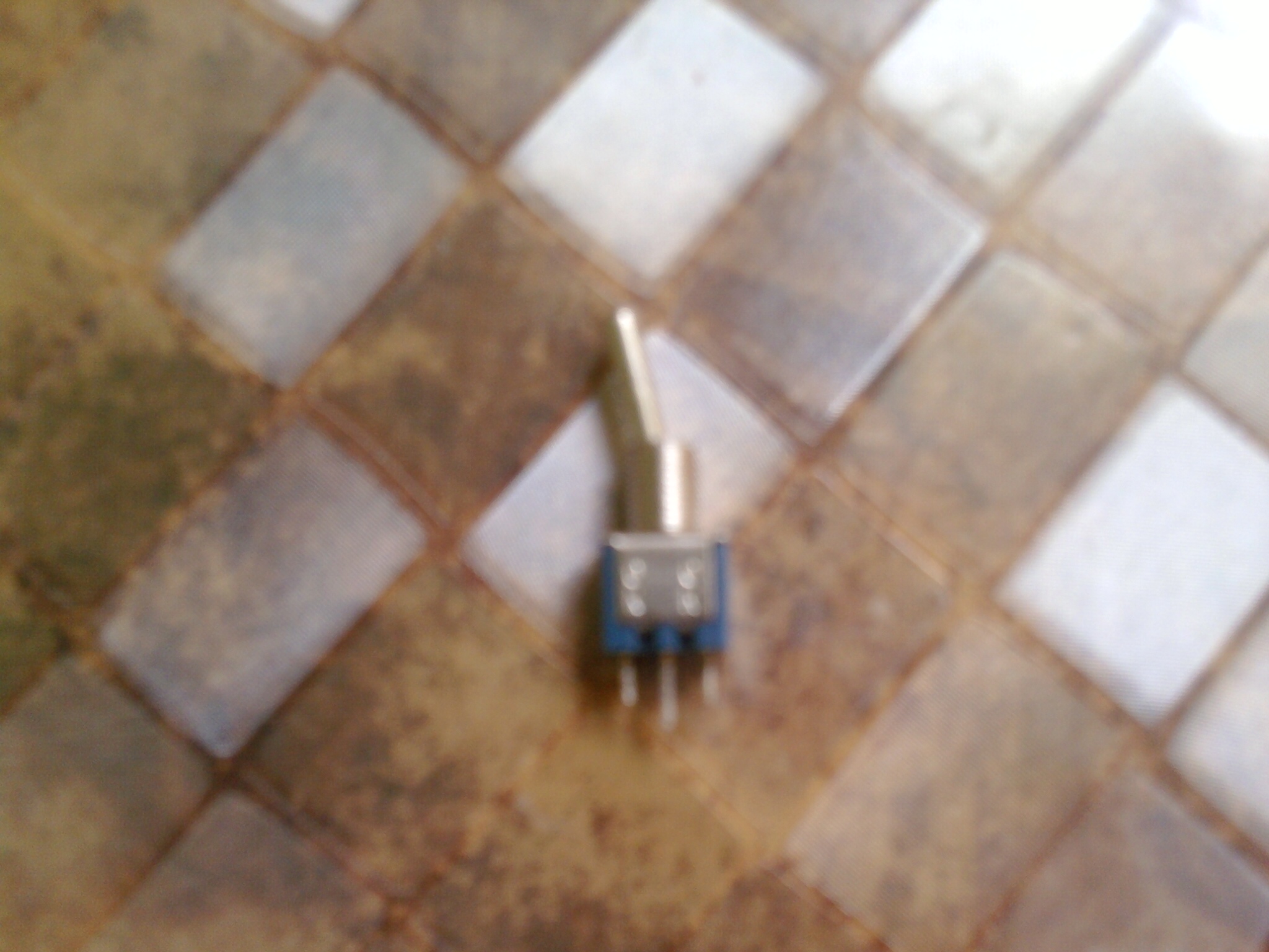 A otro de los helicópteros se le dañó el botón de encendido, el cual es de tamaño miniatura, no tenía uno parecido así que le coloqué el más pequeño que encontré, el cual aún era demasiado pesado para el juguete, por lo que le hacía difícil elevarse además de inclinar al helicóptero hacia atrás debido a que lo coloqué en la cola como muestra la imagen, esto lo digo como algo que no se debe hacer, si necesitan agregar alguna pieza al helicóptero debe ser lo más ligera posible y debe ser colocada en un punto en que quede bien equilibrada.